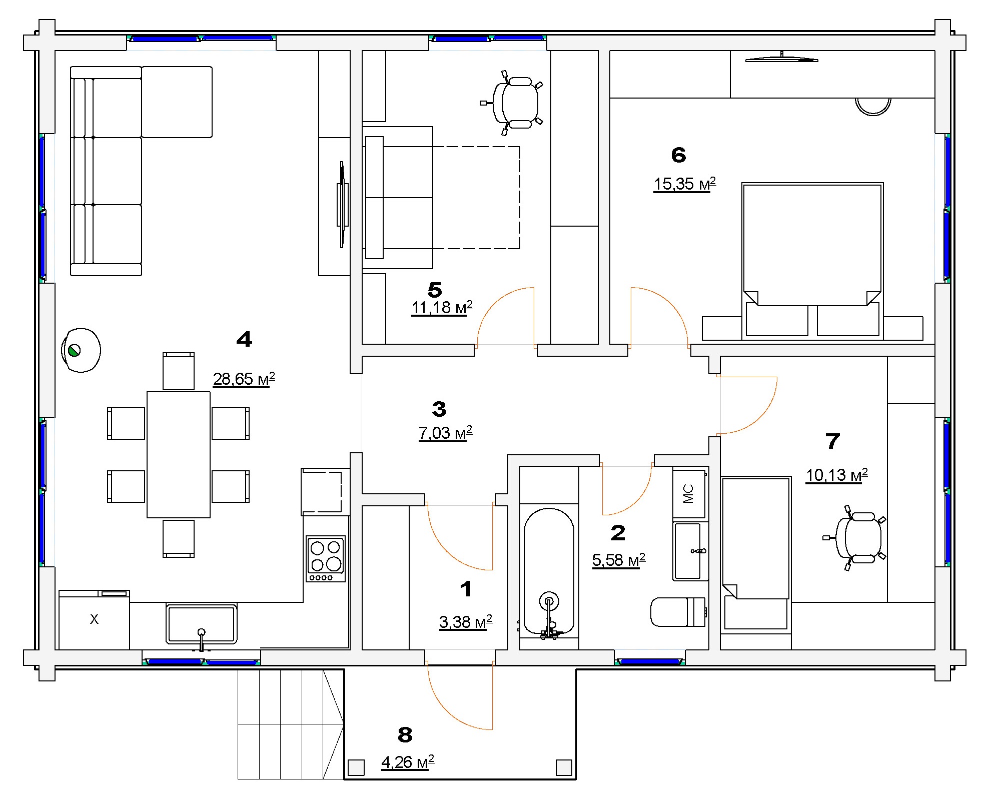 1 этаж, 4 комнаты, общая площадь 85.00 кв.м.