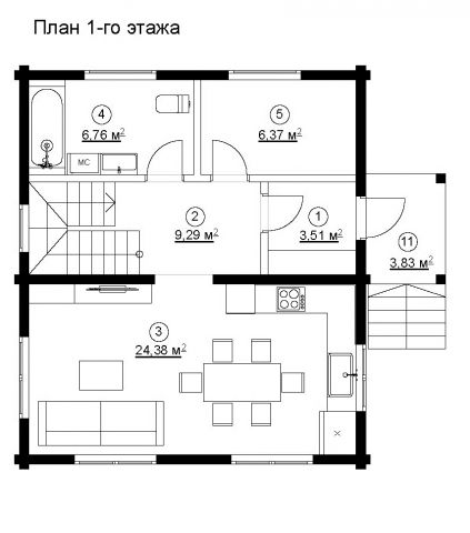 - Площадь застройки: 69 м2