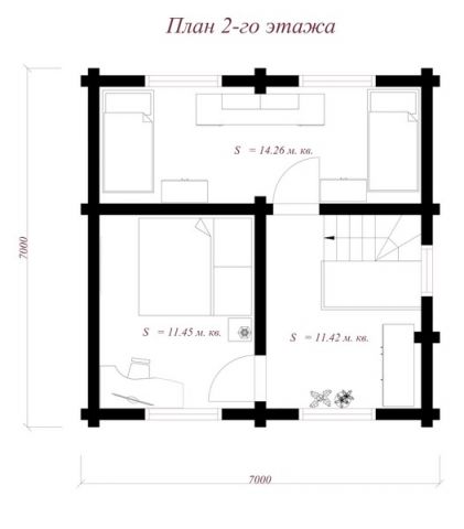 2 этажа, 3 комнаты, общая площадь 70.00 кв.м.