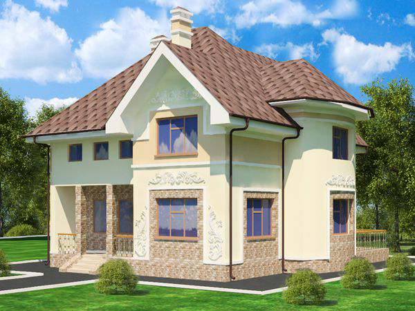 В этом доме всегда найдется место для большого семейства. За внешний вид строения отвечает декоративный камень в сочетании с фасадным молдингом и нежной и величественной лепниной.