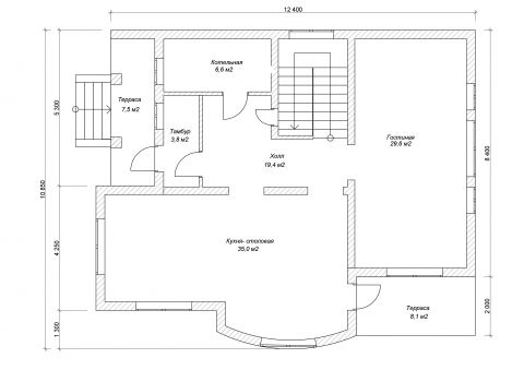 - Тип фундамента: Ленточный, перекрытый монолитной ж/б плитой