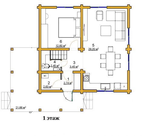 2 этажа, 4 комнаты, общая площадь 84.00 кв.м.