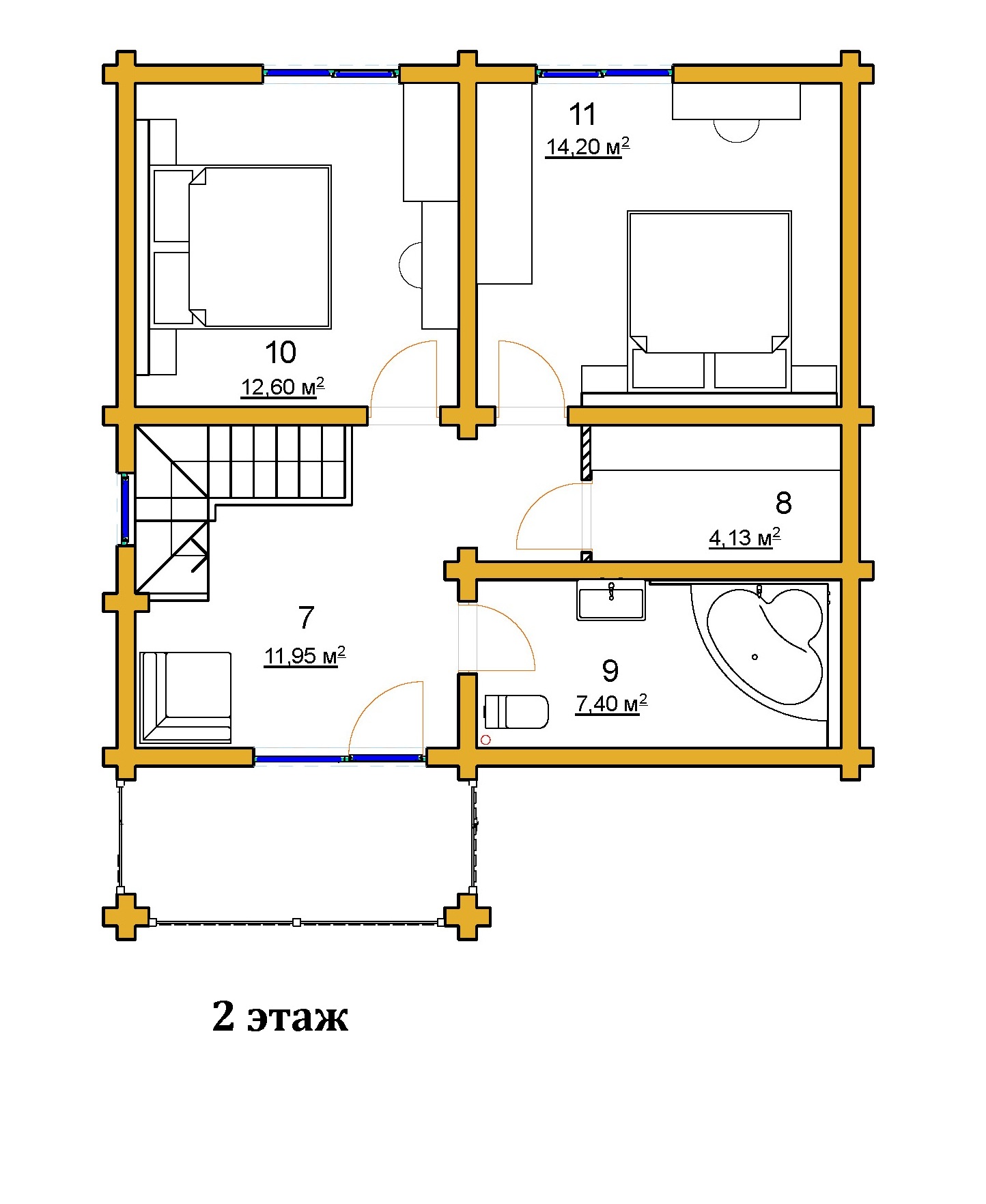 2 этажа, 4 комнаты, общая площадь 84.00 кв.м.