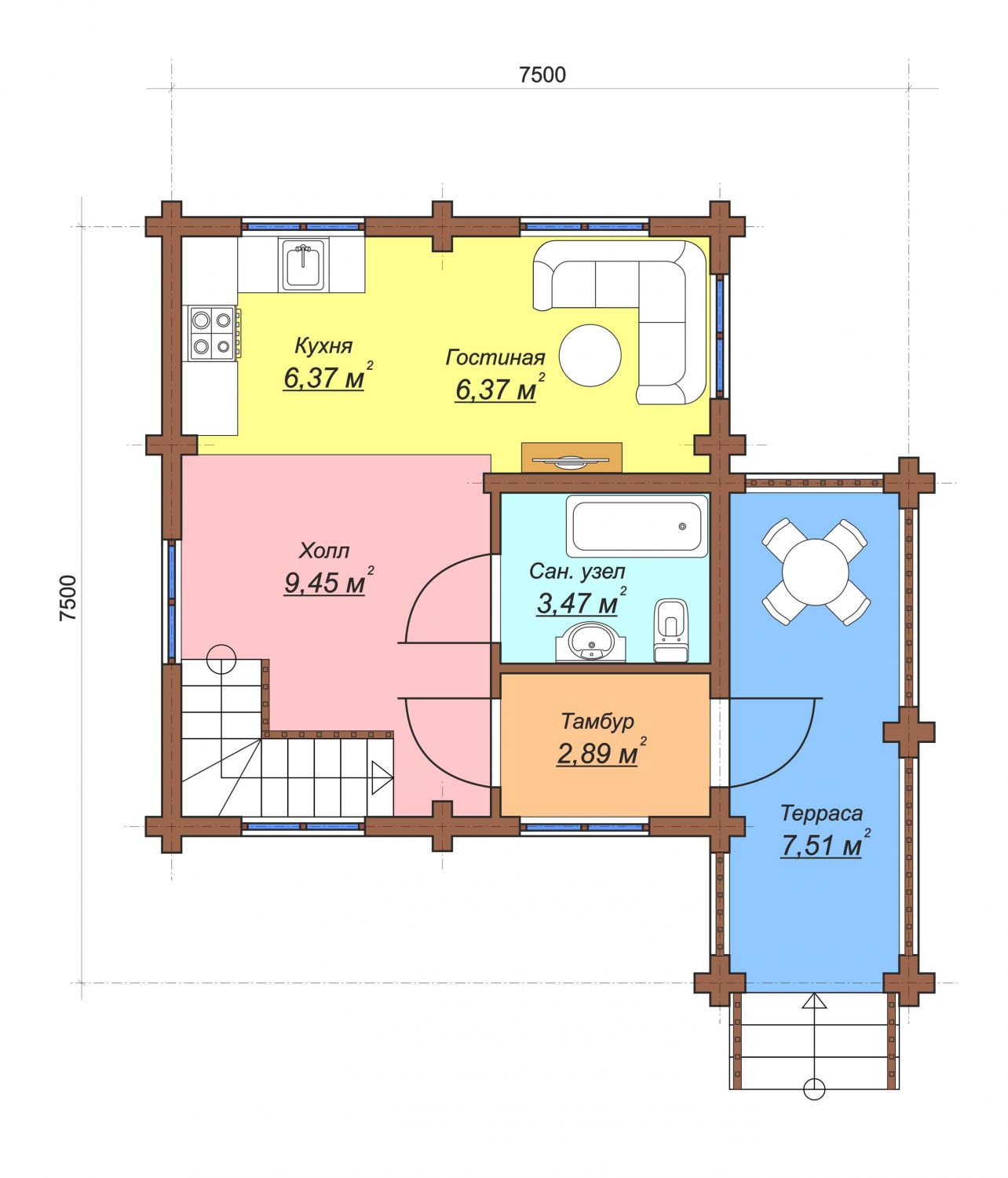 2 этажа, 4 комнаты, общая площадь 62.00 кв.м.