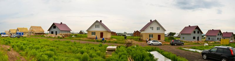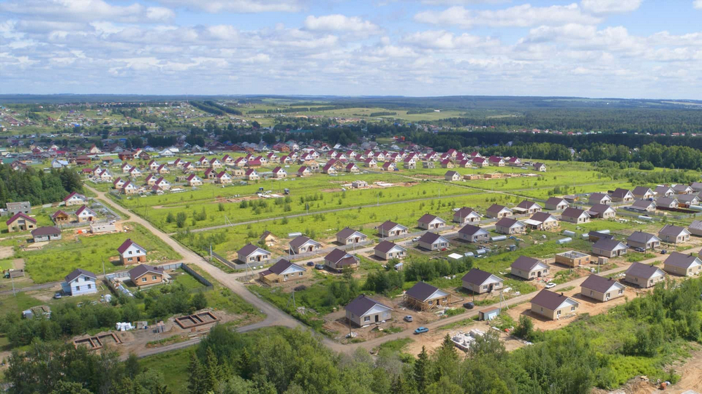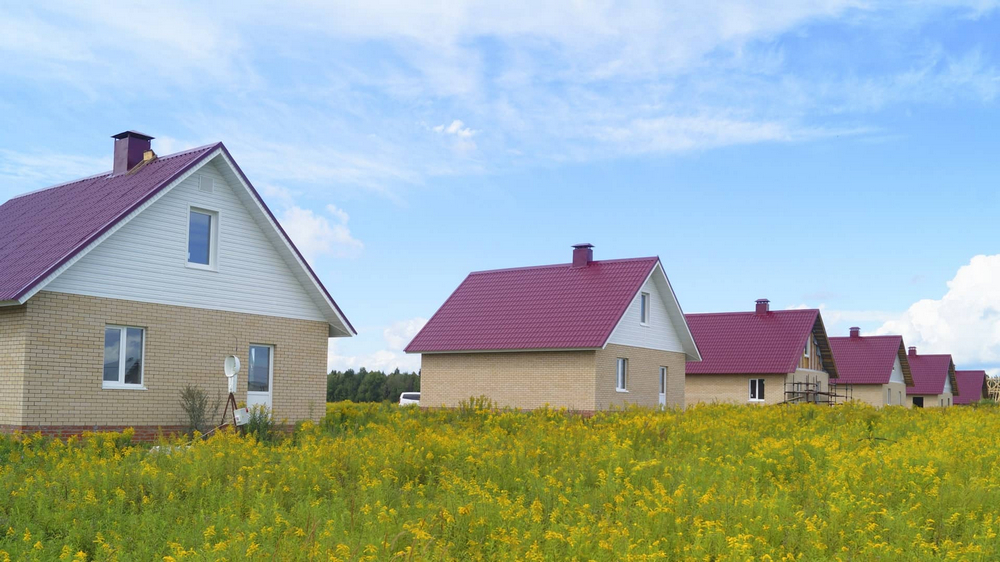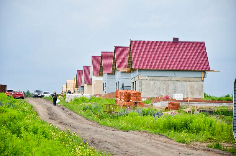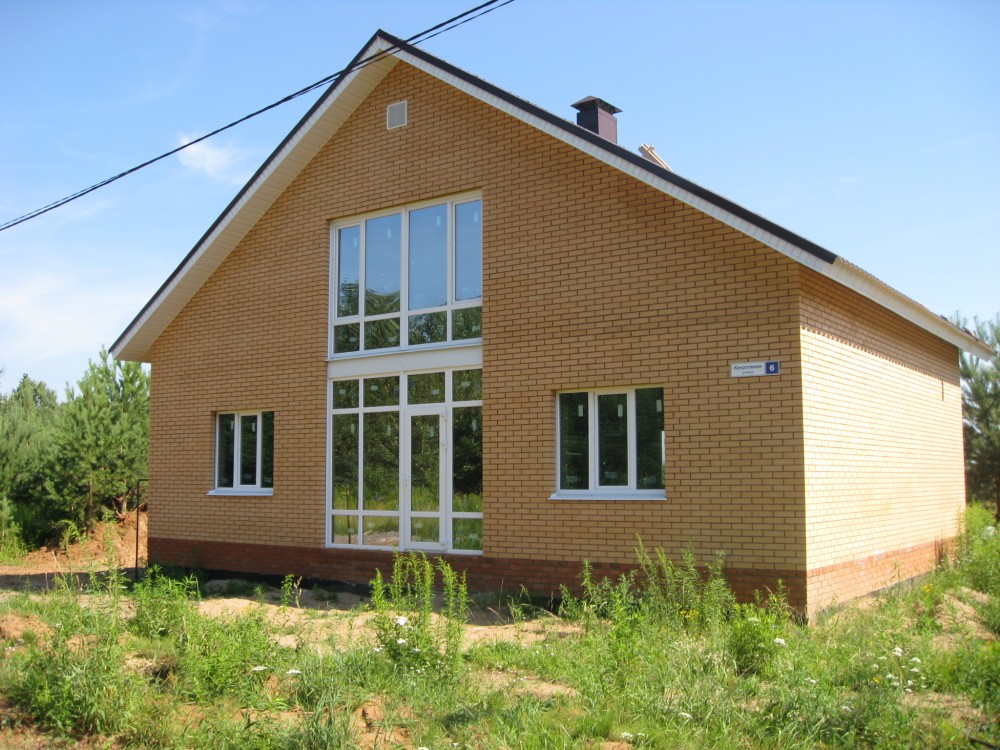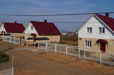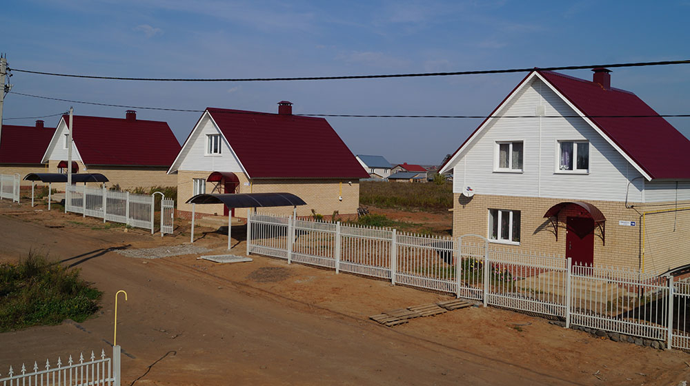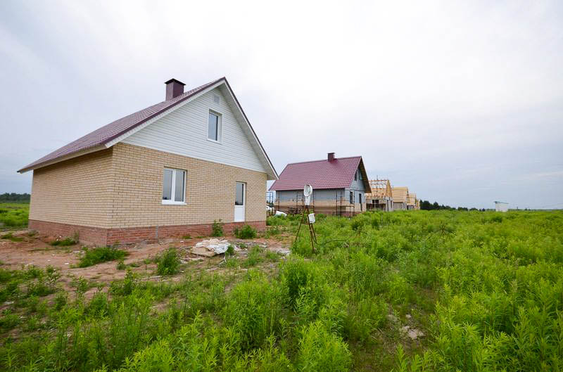 Есть участки под строительство и участки с готовыми домами. Дома строятся из газобетона или кирпича. Дома в 1 или 2 этажа, площадь от 69 до 136 кв.м. Сдаются в предчистовой или чистовой отделке.