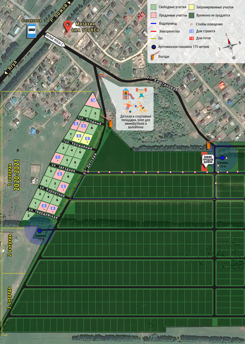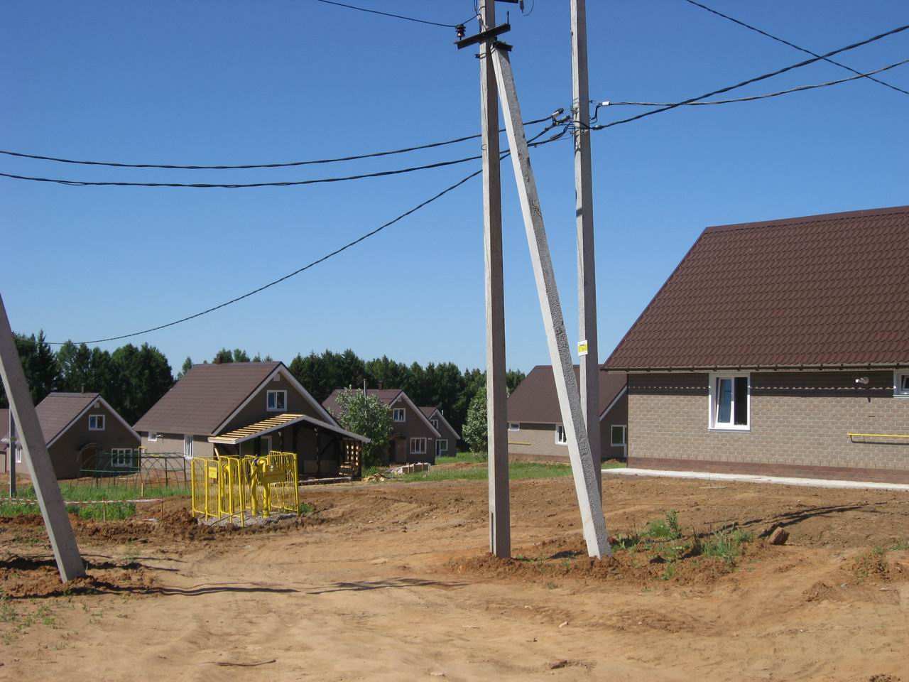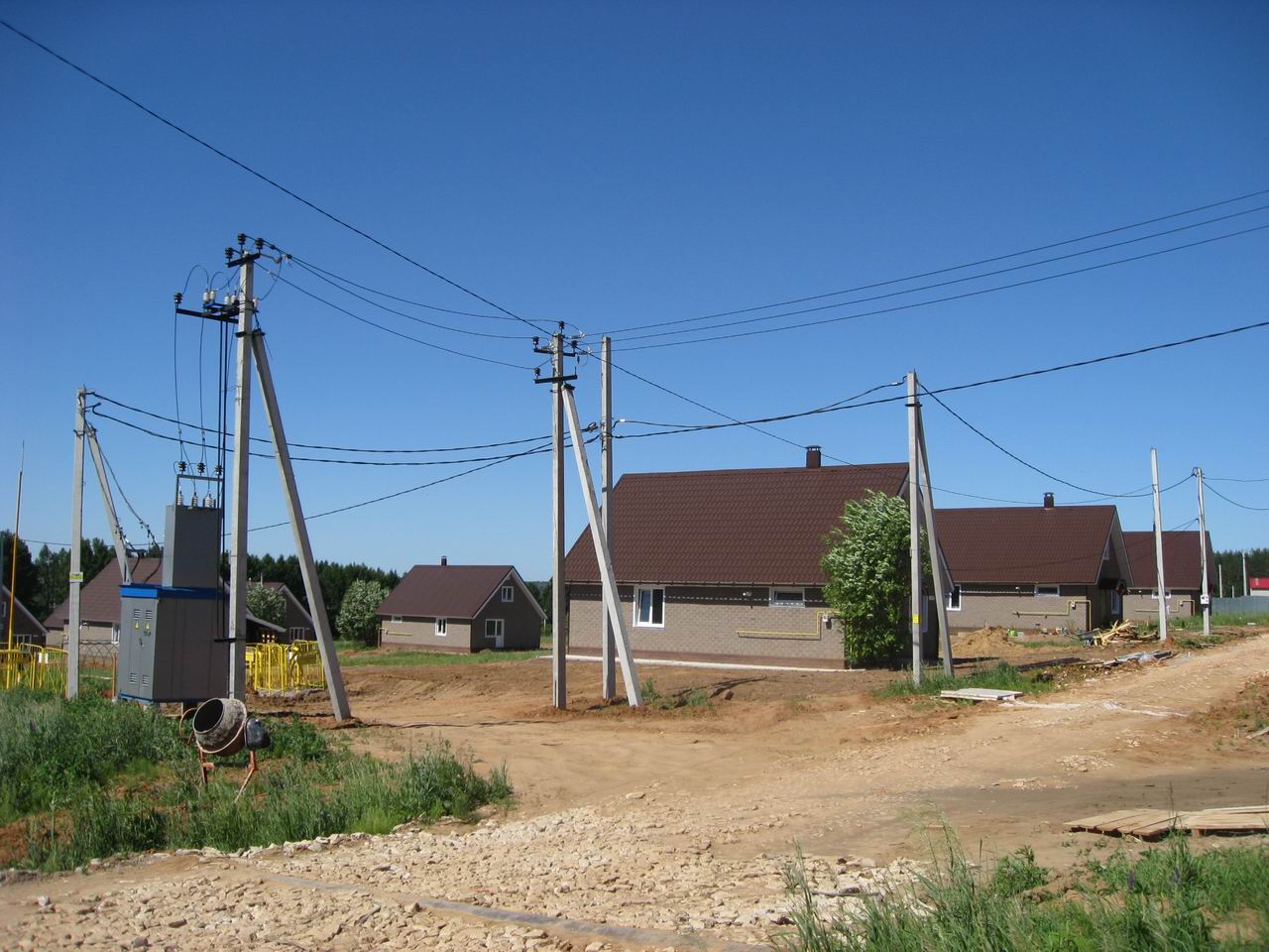 Уже отсыпали дороги, установили водонапорную башню, закопали в улицах артезианский водопровод, протянули газ. Запущена основная постоянная линия электроснабжения.