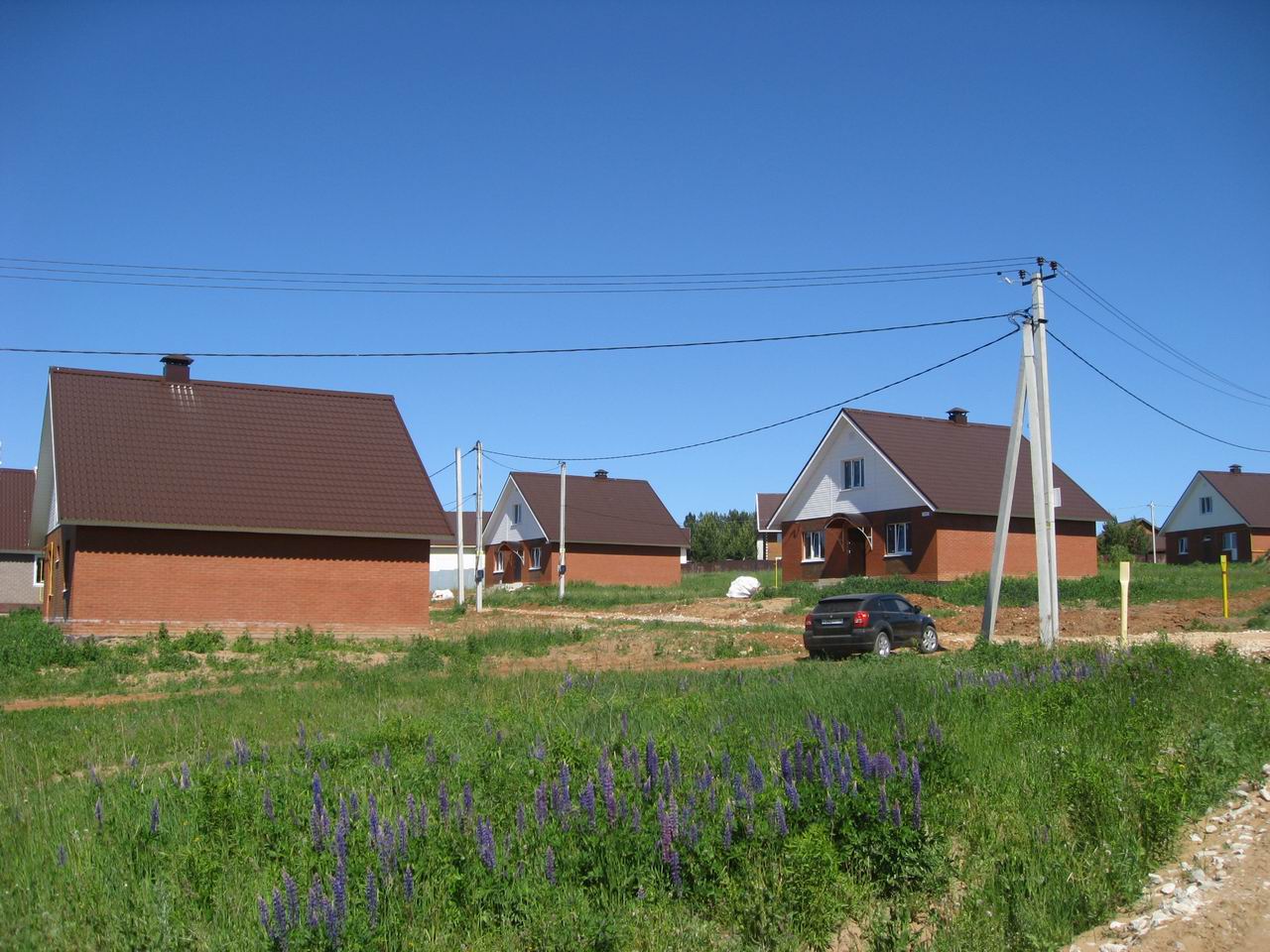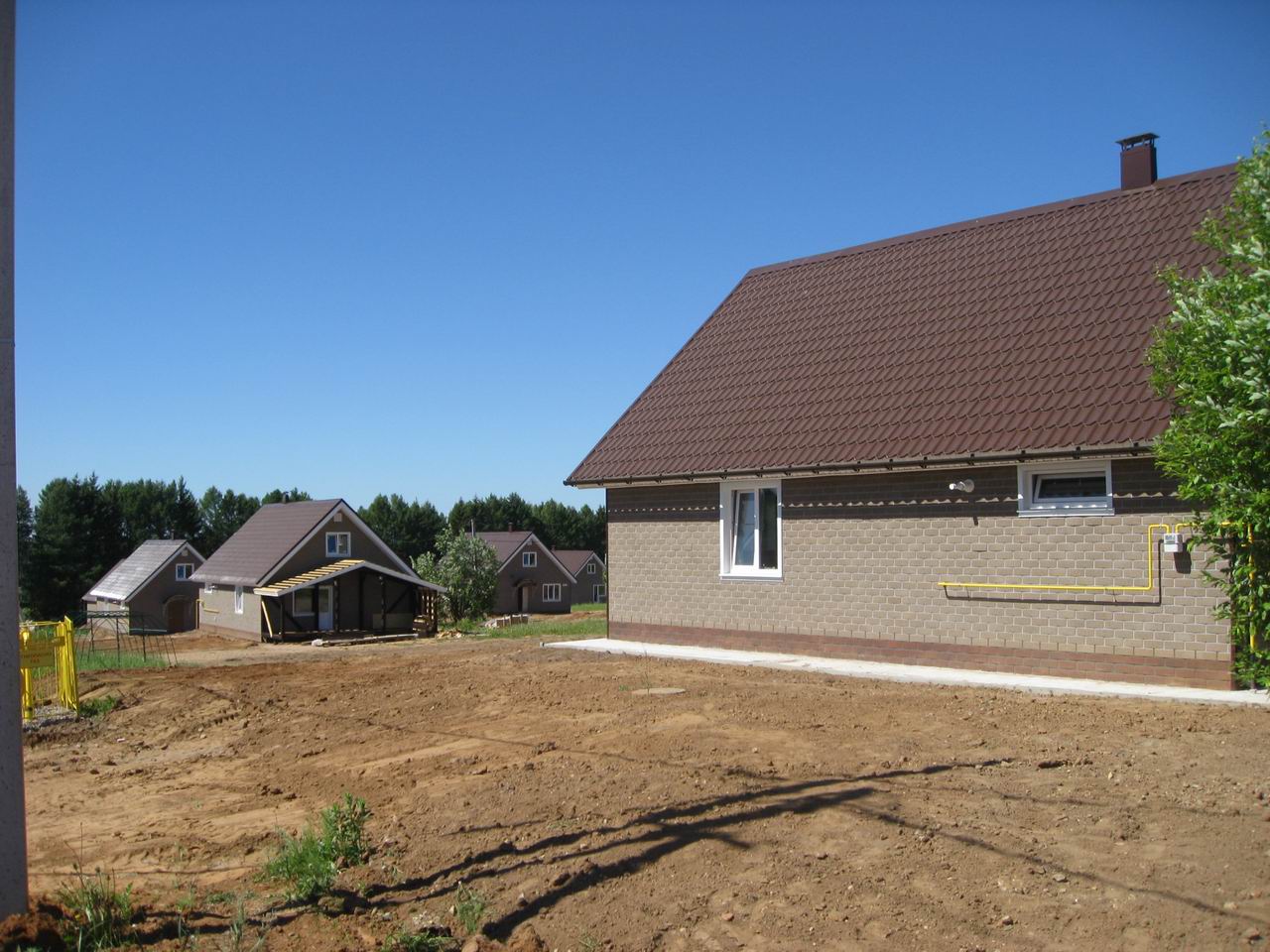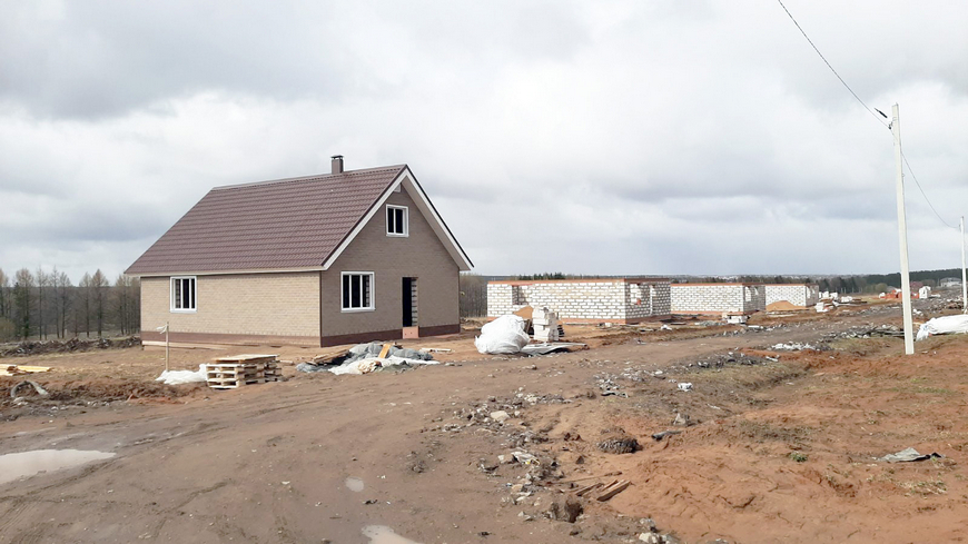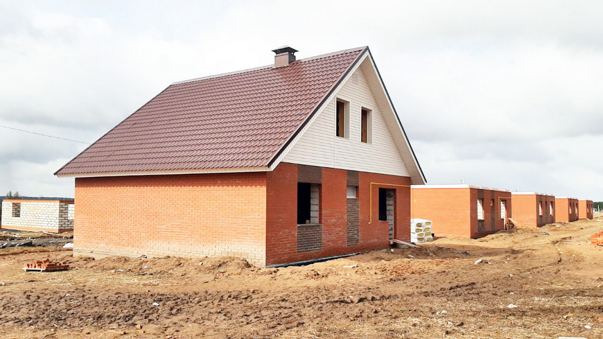Посёлок застраивается типовыми домами из газобетона и кирпича-газобетона, всего 4 проекта, площади от 54 до 127 м2. Сдаются в предчистовой или чистовой отделке.