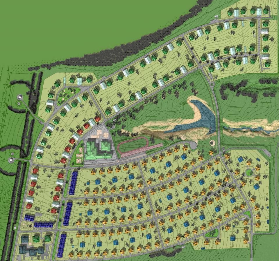 Общая площадь 43 га, всего будет построено 250 домов разного типа с прилегающими земельными участками от 10 до 25 соток.