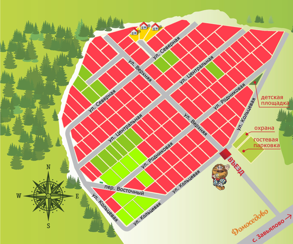 Безопасность. Посёлок огражден по периметру, на въезде установлен контрольно-пропускной пункт. Предусмотрена круглосуточная охрана.