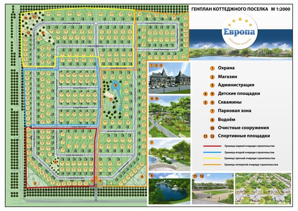 Особенность поселка «Европа» — уже построенные лаконичные стильные дома, оформленые в приятной цветовой гамме. Дома выполнены из кирпича на монолитном фундаменте, крыши утеплены и покрыты гибкой или металлочерепицей, установлены пластиковые двухкамерные стеклопакеты и металлические входные двери, фасады отделаны декоративной штукатуркой, коммуникации подведены. Кроме коттеджей построены трехэтажные многоквартирные дома и таунхаусы.