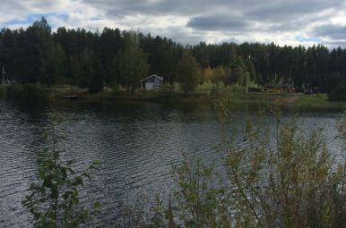 Поселок стоит на берегу озера на реке Вожойка, вокруг сосновый лес.