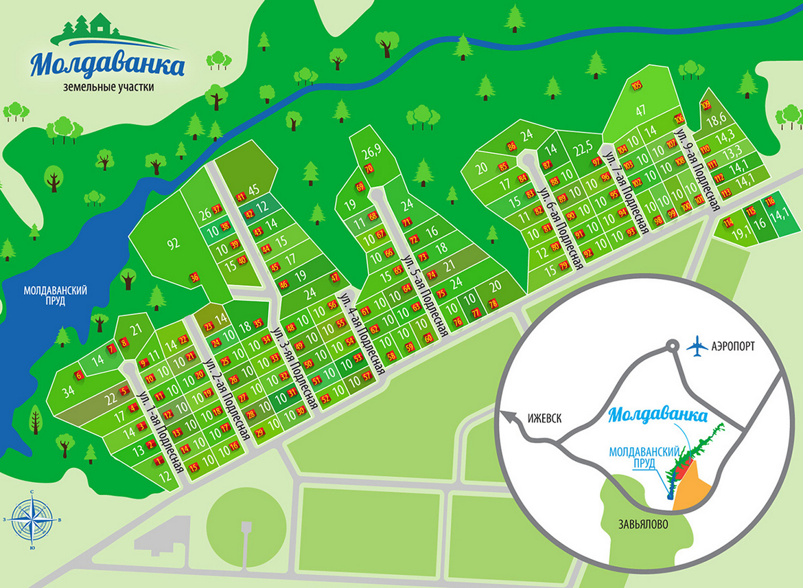 Загородный поселок «Молдаванка» расположен в селе Завьялово, в 10 километрах от Ижевска. Дорога из города на автомобиле займет 20 минут.