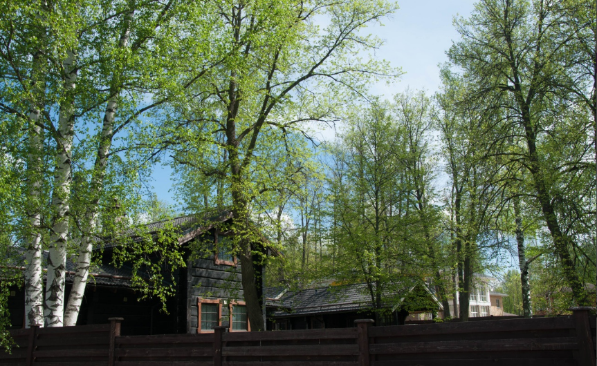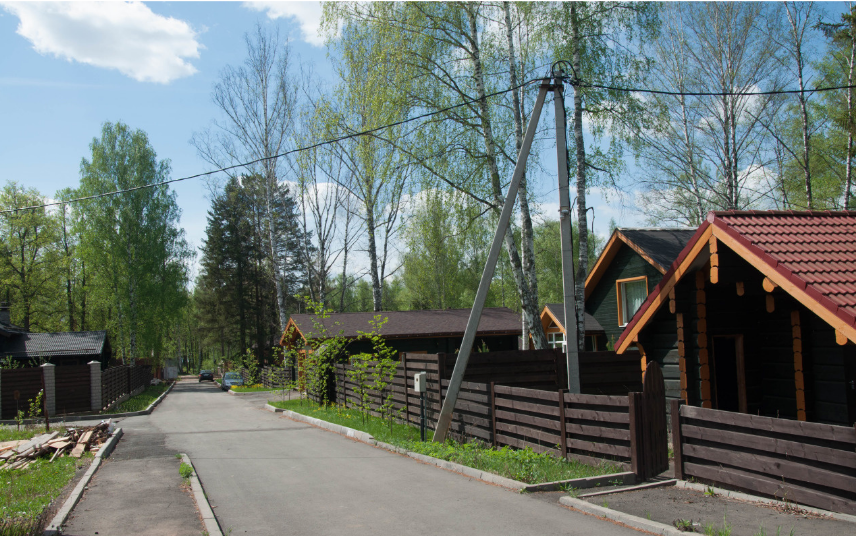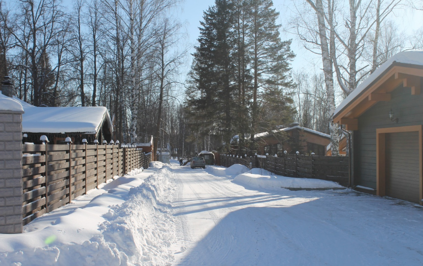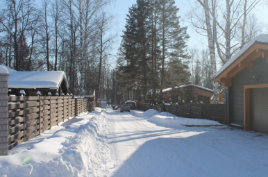 Территория поселка ограждена по периметру. На въезде контрольно-пропускной пункт, оборудованный автоматическими воротами.