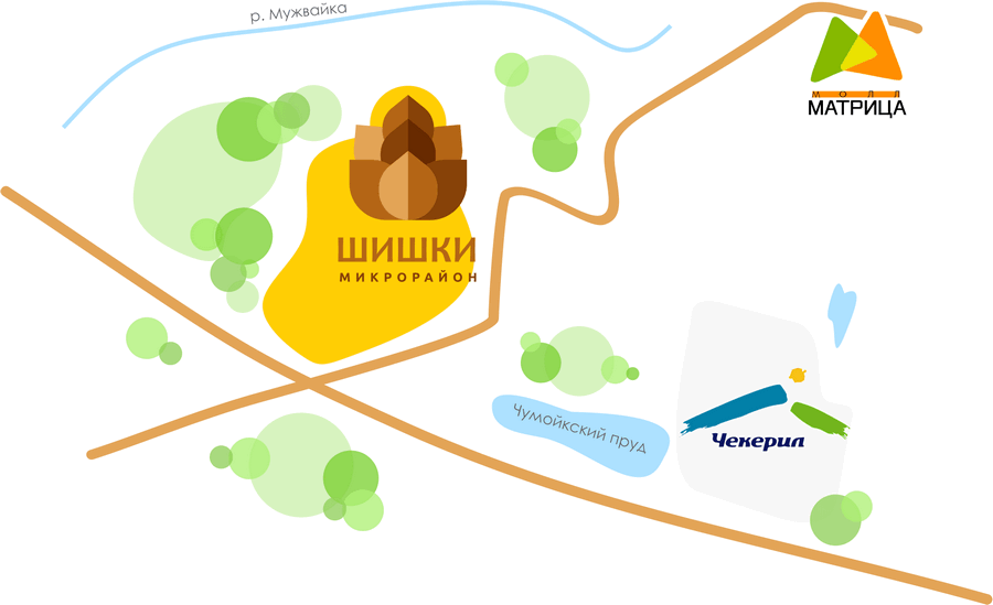 Микрорайон находится в пределах города. В 7 минутах езды построен торгово-развлекательный центр «Матрица Молл». В 5 минутах ходьбы расположен спортивный курорт «Чекерил», в котором есть бассейн, спортивные секции по интересам, тюбинговая и лыжная трассы, банный комплекс, ледовый дворец и каток. А вблизи участков настоящая живая природа: густой хвойный лес неподалеку, деревья на участках.