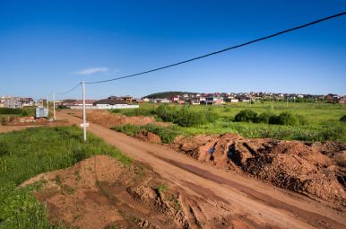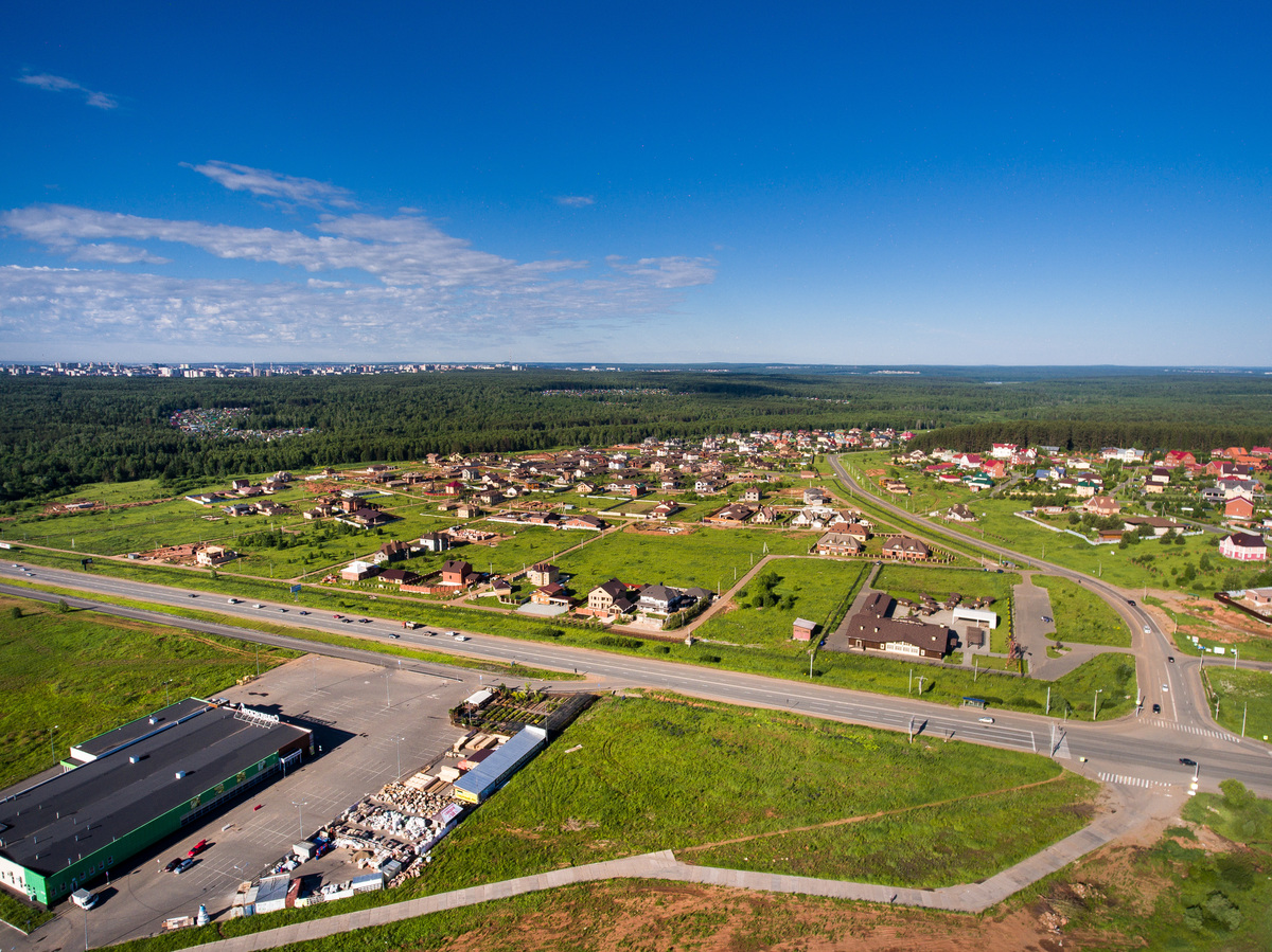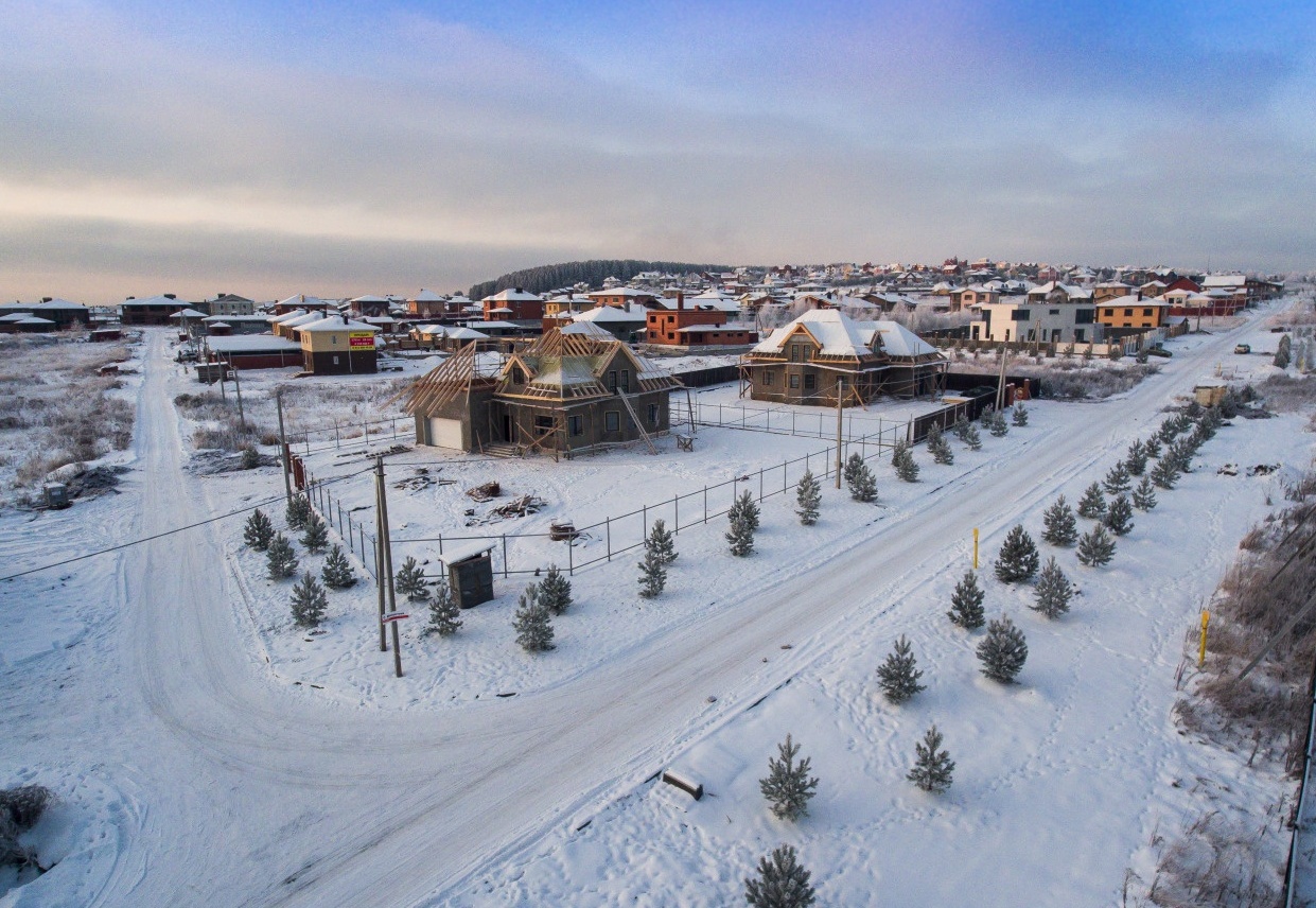 По периметру микрорайона установлен металлический забор. Дороги асфальтированные. К участкам подведены газ и электричество.