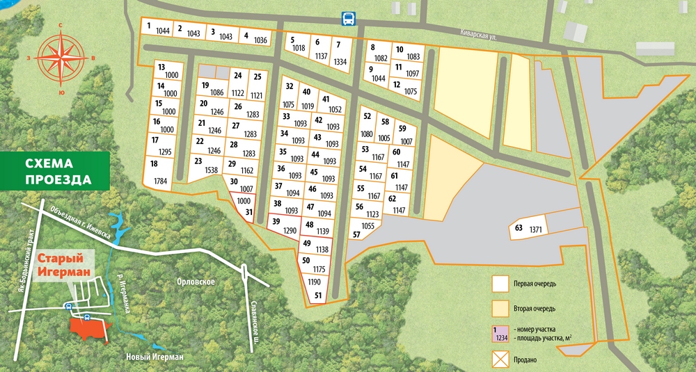 Все проезды до участков отсыпаны щебнем. В самое ближайшее время район будет электрифицирован по федеральной программе. Так же будет установлена точка газораспределительного пункта, подключение для собственников участков — бесплатное.