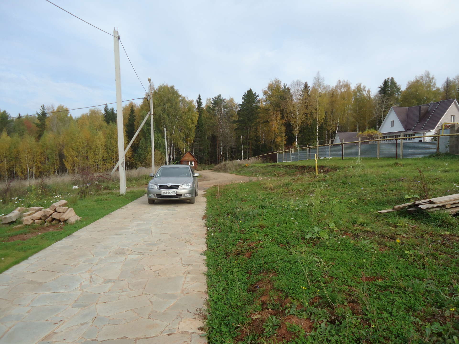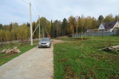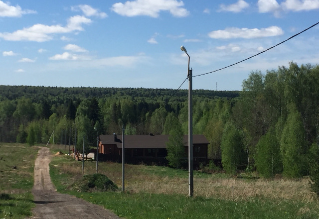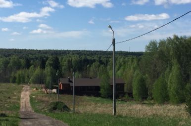 Электрические столбы и газопровод идут вдоль дороги и подходят к каждому участку. Дорога отсыпана.