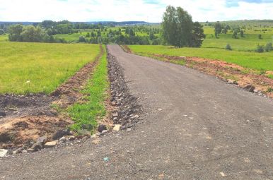 В качестве дорожного покрытия в микрорайоне используется шлаковый щебень с послойным уплотнением вибрационным катком.